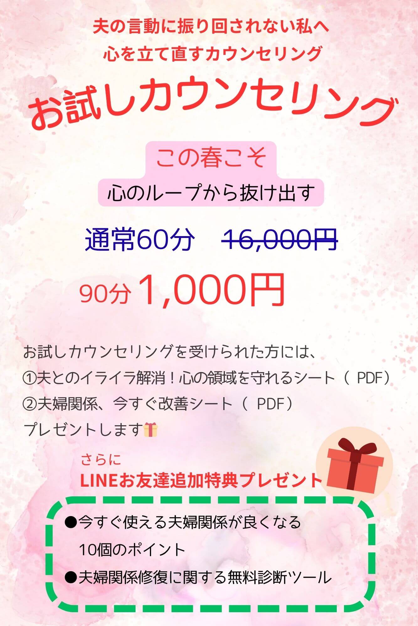 夫から離婚したいと言われ、関係を修復したいと思いカウンセリングを受けました。